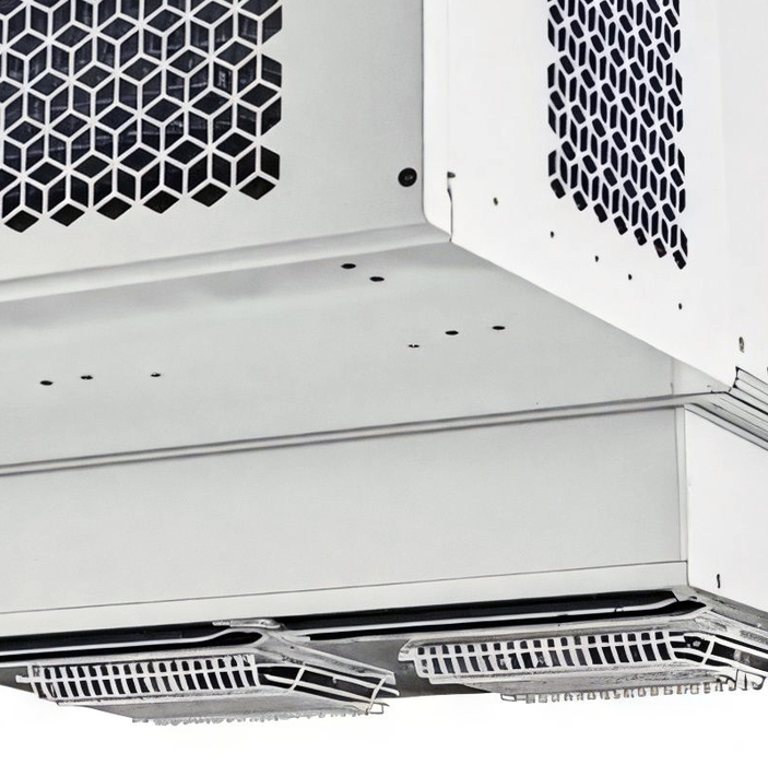 - Система воздухозабора позволяет при необходимости устанавливать моноблок на минимально близком расстоянии к стенке камеры