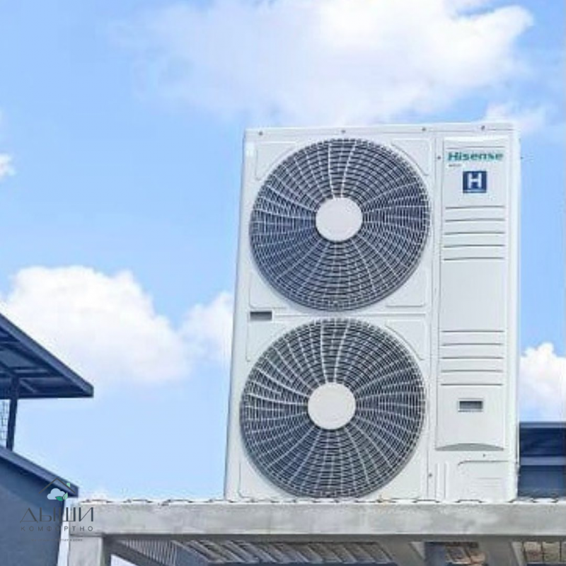 На данном объекте, команда наших специалистов выполнила монтаж VRF системы с двумя блоками канального типа от бренда Hisense AVD-12HCFCH (3,6+3,6 кВт) Наружный блок был размещён на кровле дома, на специальную платформу.